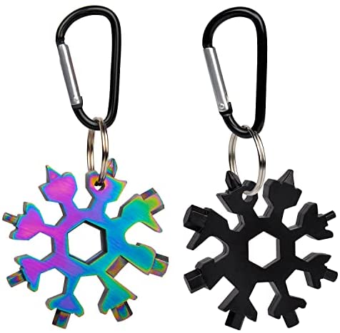 【The GIFTS YOU Will GET】The multitool kit included 2 snowflake tool (black and colorful),also coming with 2 keyrings and 2 carabiners. It can be hung it on your backpack,and don’t worry loosing it anymore.