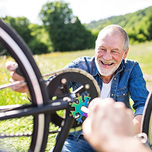 【18 FUNCTIONS TOOLS】the snowflake tools can be used as hexagonal wrenches(3mm-9mm), Allen wrenches (7mm-14mm),slotted screwdriver,box opener,Phillips screwdriver,bottle opener,etc.Flathead screwdrivers, # 3 and # 2 Phillips screwdrivers, 4, 5 and 6mm Allen screws, 1/4 box cutter in end keys 7, 8, 10, 11, 12, 13 and 14 mm end key.