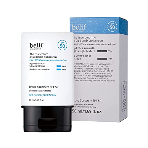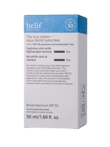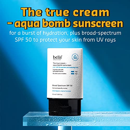 belif Aqua Bomb Sunscreen Broad Spectrum SPF 50 | Lightweight 2-in-1 Moisturizing Sunscreen | Skin Hydrating with UV Rays Blocking | Moisture Barrier Replenishment, Clean Finish | 1.69 fl. Oz