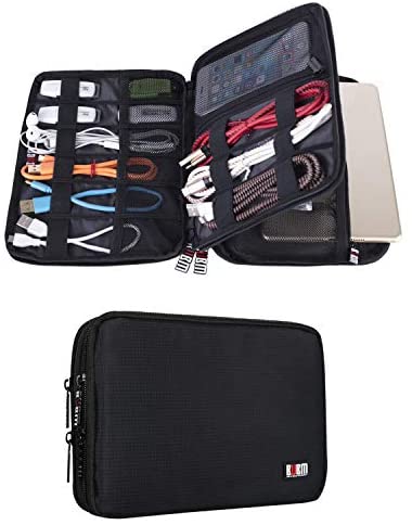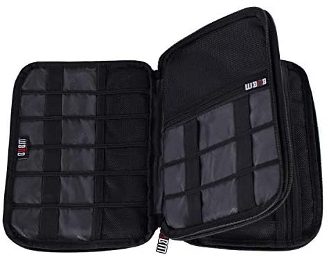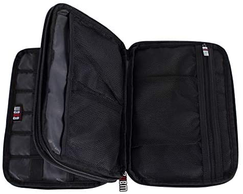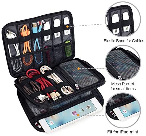 BUBM Double Layer Electronic Accessories Organizer, Travel Gadget Bag for Cables, USB Flash Drive, Plug and More, Perfect Size Fits for iPad Mini (Medium, Black)