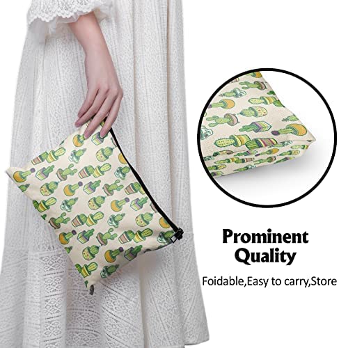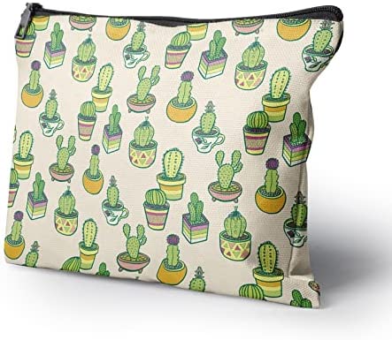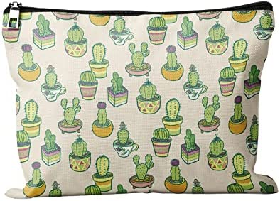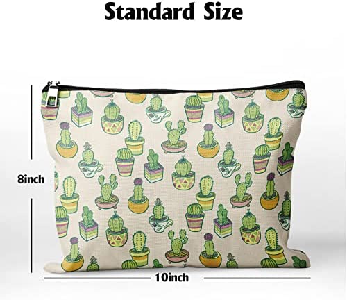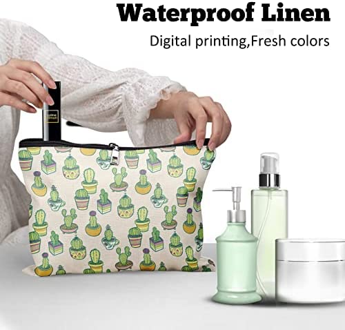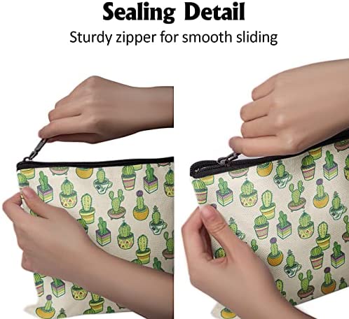 【Linen Canvas Fabric】: This cactus succulent theme cosmetic bag is made of linen, durable material, light and soft, strong and durable, the bag feels very good. The zipper is of high quality, non-slip and sturdy.