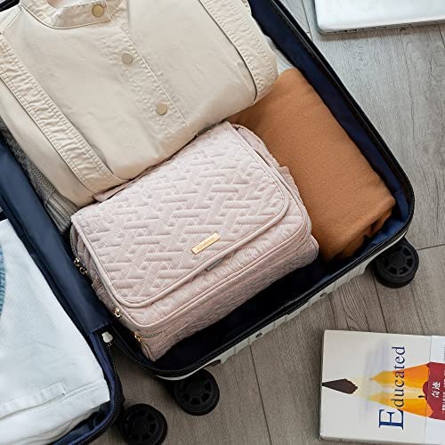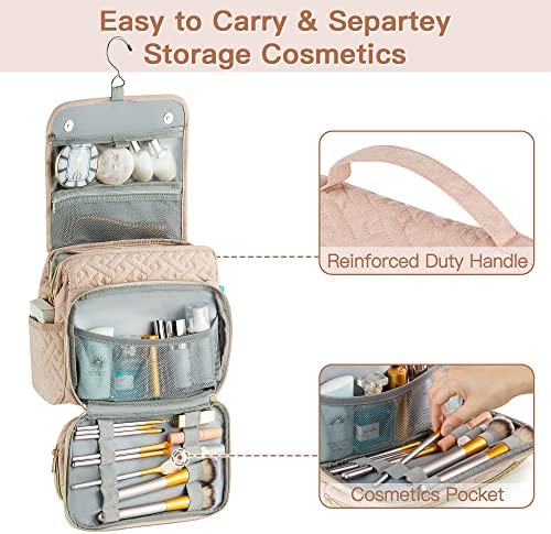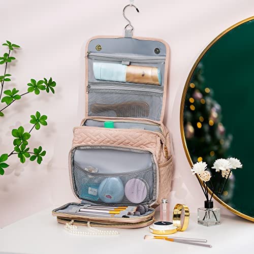 Elviros Hanging Toiletry Travel Bag for Women, Large Makeup Cosmetic Organizer, Water-resistant Traveling Bathroom Shower Accessories, Shampoo, Full Sized Container, Toiletries, Pink