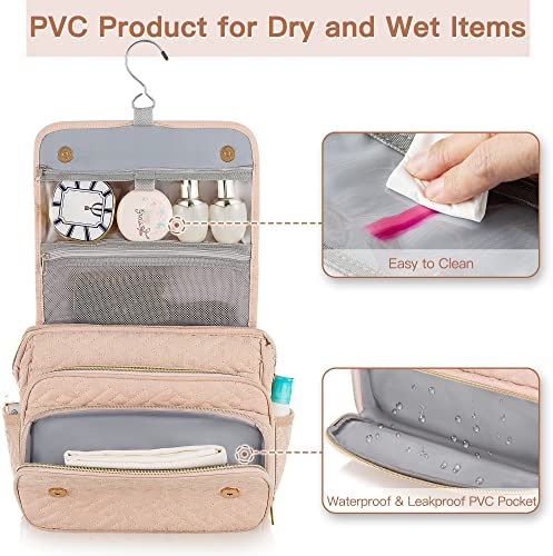 ✅ DRY & WET SEPARATION DESIGN: An independent PVC pocket is designed in front of our women’s toiletries bag, which can be used to place wet towels, wet paper towels, etc. without wetting your luggage; Distinguish between wet and dry cosmetics. Keep the toiletries and makeup clean and tidy.