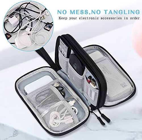 Double Layers Design: The electronics storage bag has 2 layers interior compartment with enough space to take in your cords, cables, USB drive, cellphone, charger, mouse, flash drive, and other accessories.