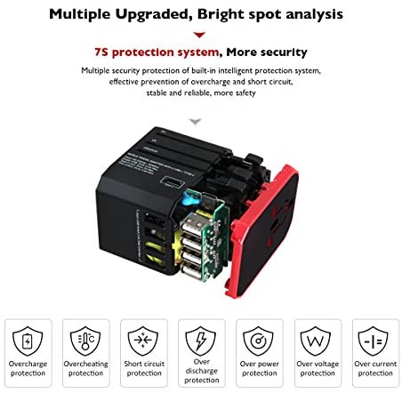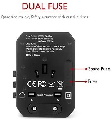 *SAFETY PROTECTION: Our travel adapter use import PC 94vo fireproof plastic material, and it won’t be burned when meet the fire, it is environmental and more reliable more safer for people using. Travel adapter converter certificates with CE,Rohs,FCC.