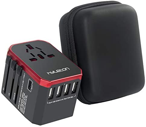 hyleton Worldwide Travel Adapter, 4 USB Ports with 5.6A High Speed Charger and 1 3.0A Type C International Wall Charger All in One Universal Adaptor for Mobile Phones and Tablets