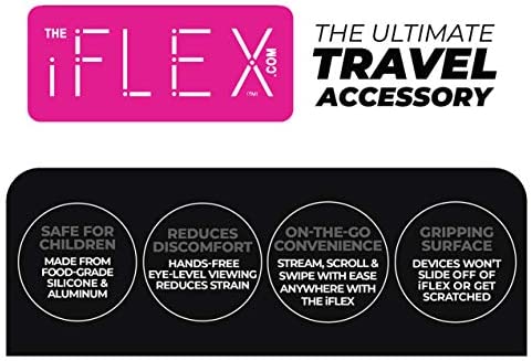 The iFLEX (patent pending) is a versatile, flexible cell phone & tablet holder. It literally has 100’s of uses! Use the iFLEX while you are on an airplane, in the car, at the office, on vacation or at home. You can bend & shape the iFLEX in just about any position. The iFLEX is made from a sturdy, flexible memory metal that is encased in a gripping, flexible, food-grade silicone…giving it a long lasting life at a great value Why do you need the iFLEX in your life? BECAUSE ? Traveling by airplane? Hang iFLEX from the tray table, magazine rack or head rest & keep your spine & head aligned when viewing your cell phone or tablet ? Prevent stiff necks and sore wrists. Use the iFLEX to hold your cell phone at eye level while on long flights or while on a Netflix binge ? When attached to your kitchen cabinet shelf, the iFLEX keeps you hands-free while you are cooking & looking at recipes or watching a movie ? Stand-up desk at work? Attach The iFLEX to your cubicle wall to have an eye level view of your phone during a video chat. Use the iFLEX to hold your notes while you type. Use the iFLEX to hold your pens or remotes so you never lose them ? Stuck on a long layover at the airport? Watch a movie! Just bend the iFLEX around your suitcase handle & watch the latest movie, hands-free, at eye level ? Need some ‘me time’? Bend The iFLEX to fit any shelf, ledge or flat surface so you never miss a text, show or song while you soak in your bath tub oasis. The iFLEX is waterproof ? Keep the peace! The iFLEX can hold two mobile devices at once for peaceful viewing from both sides so all of the kiddos can huddle around & enjoy 2 shows at once ? MOST IMPORTANT The iFLEX can be used as a taco holder. NO LIE! It holds tacos! Not really it’s main use, but it’s that flexible & fun! ? The iFLEX definitely makes your life easier! ANYTHING IS POSSIBLE, SHOW US YOUR FLEX!