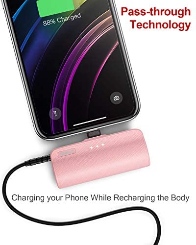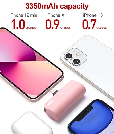 iWALK Mini Portable Charger for iPhone with Built in Cable[Upgraded], 3350mAh Ultra-Compact Power Bank Small Battery Pack Charger Compatible with iPhone 13/12/12 Pro Max/11 Pro/8/7 Airpods,Pink