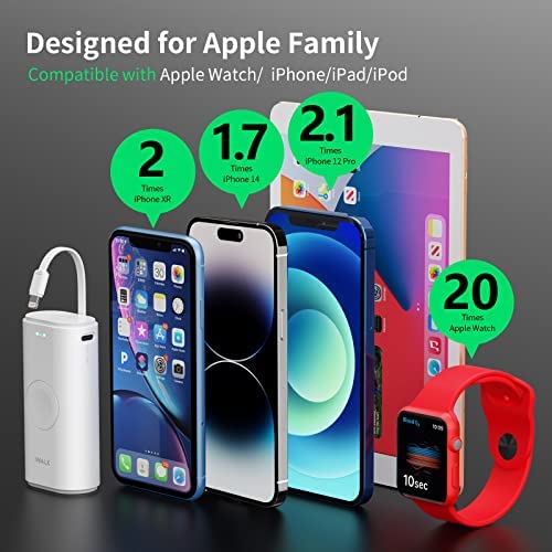 iWALK Portable Apple Watch Charger, 9000mAh Power Bank with Built in Cable, Apple Watch and Phone Charger, Compatible with Apple Watch Series 7/6/Se/5/4/3/2, iPhone14/13/12/12 Pro Max/ 11/6s, White