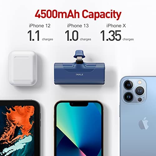 iWALK Small Portable Charger 4500mAh Ultra-Compact Power Bank Cute Battery Pack Compatible with iPhone 13/13 Pro Max/12/12 Mini/12 Pro Max/11 Pro/XS Max/XR/X/8/7/6/Plus Airpods and More,Blue