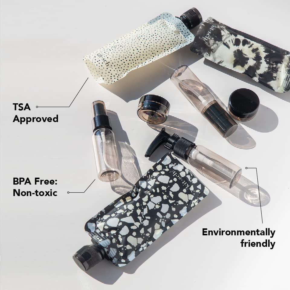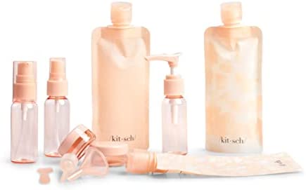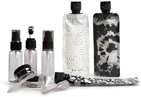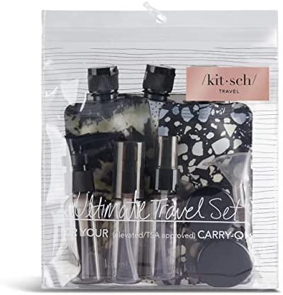 Kitsch Ultimate Travel Set – Set of 11 Travel Size Container Kit Includes Pump & Spray Bottles Jars with Lids and More Portable Leakproof Reusable TSA Approved Toiletry Holiday Gift Holders
