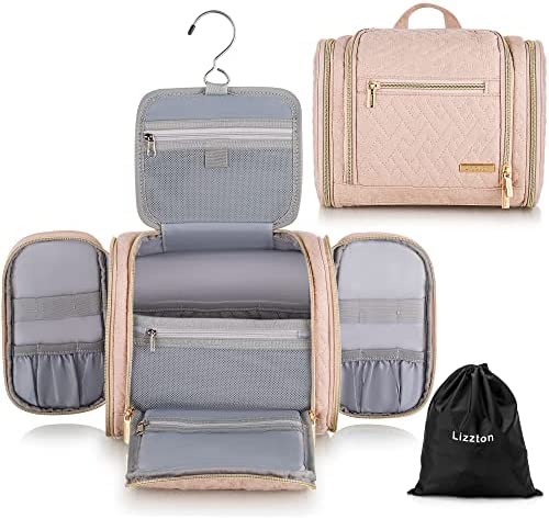 UPGRADE LARGE CAPACITY: Size: 10.43″*4.33″*7.87″(rolled)/ 19.87″*7.48″*21.46″(opened). Lizzton toiletry bag for women with 3 separated compartments meets all your storage needs. 1 main large capacity compartment to keep all your travel toiletries accessories organized. Both sides are designed for storing makeup brushes, toothpaste, razor and toothbrushes, etc.
