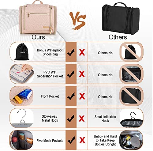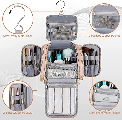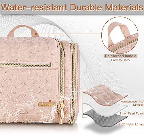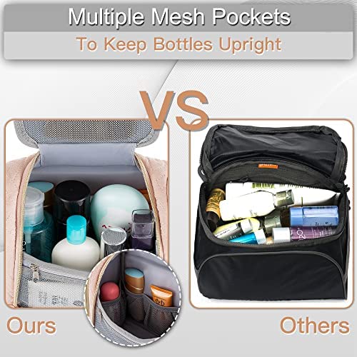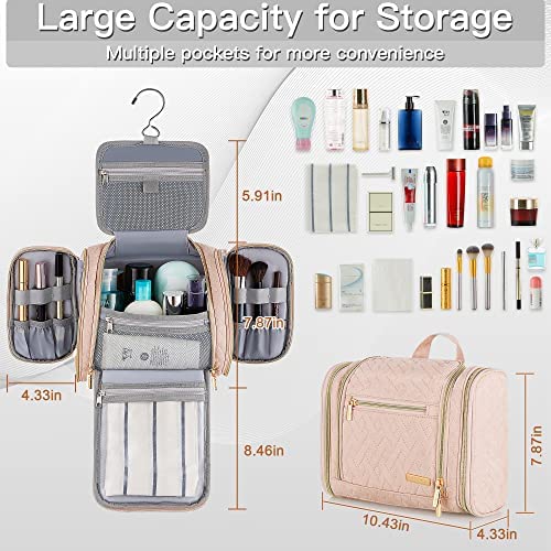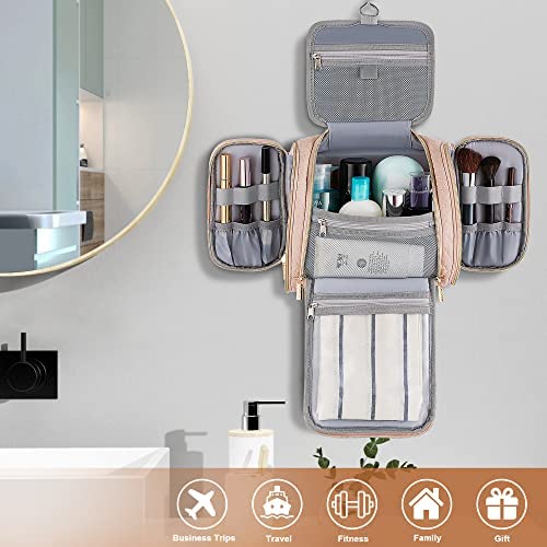 Lizzton Travel Toiletry Bag for Women and Men, Large Hanging Cosmetic Makeup Organizer Bags, Water-resistant Bathroom Shaving Dopp Kit for Toiletries Accessories (Pink)