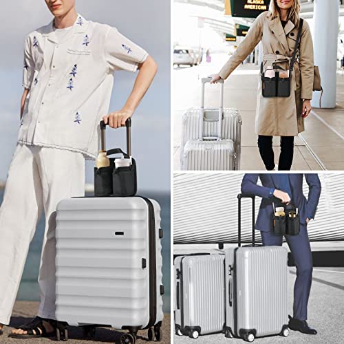 Luggage Cup Holder, Travel Drink Holder Bag with Shoulder Strap, Luggage Cup Caddy with Zipper Pocket, Suitable for Most Suitcase Handles Can Hold Two Coffee Mugs, Airplane Travel Accessories — Black