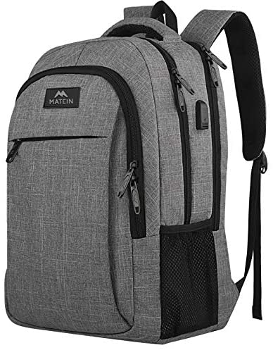 Matein Travel Laptop Backpack, Business Anti Theft Slim Durable Laptops Backpack with USB Charging Port, Water Resistant College School Computer Bag Gifts for Men & Women Fits 15.6 Inch Notebook, Grey