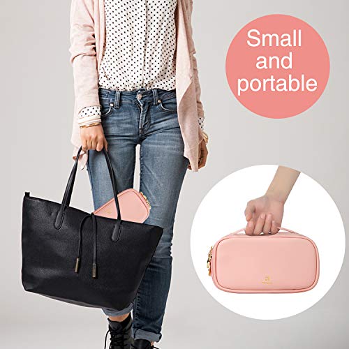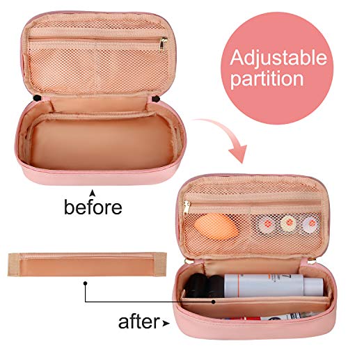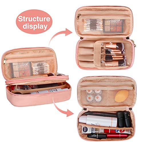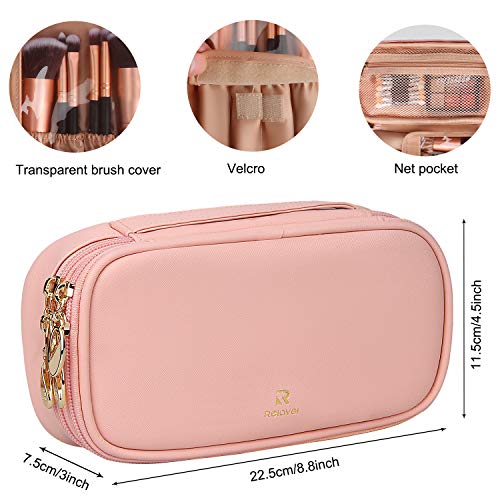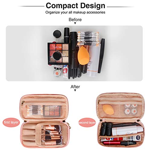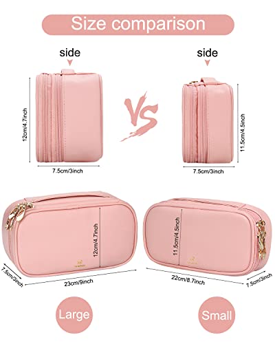 Relavel Makeup Bag Small Travel Cosmetic Bag for Women Girls Makeup Brushes Bag Portable 2 Layer Large Capacity Cosmetic Case Brush Storage Organizer Pouch Christmas Gifts Purse Toiletry Bag (Pink)