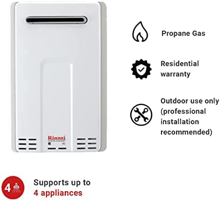 Rinnai V65eP Non-Condensing Propane Tankless Water Heater, Outdoor Installation, Up to 6.5 GPM