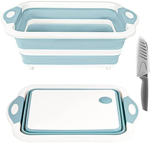 ✔ Must-Have for Home and Outdoor: this useful kitchen gadget bring much convenience for kitchen stuff. The portable size is also handy for camping, hiking, fishing, beach, RV, garden, picnics, BBQ. Storage basket or a utensil works perfectly for icing beverages, foldable dish tub for washing, collapsible chopping board for cutting, chopping and slicing.