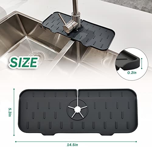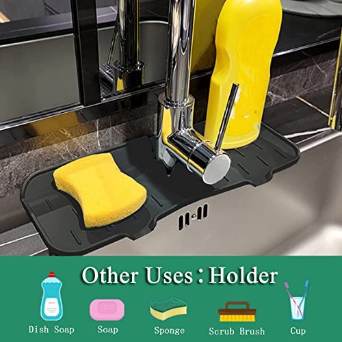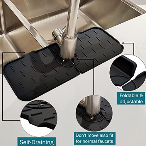 Silicone Faucet Handle Drip Catcher Tray,Kitchen Faucet Sink Splash Guard,Give Away one Large and one Small Folding Funnel,Kitchen and Bathroom Faucet Protector Mat,Keep Drying Accessories (Black)