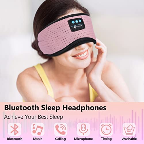 Sleep Headphone, Bluetooth Wireless White Noise Sleeping Eye Mask,3D Breathable Sleep Mask with Timer for Sleeping Travel Relaxation, Meditation, Cool Gadgets for Women Man (Pink)