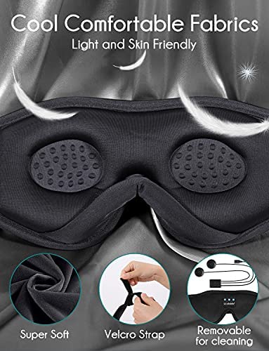 【Perfectly Block Out Light & Wireless Connection】LC-dolida Sleep headphones sleep mask with bluetooth headphones has a full coverage and unique nose area design, it can effectively block out light, prevent light leakage and makes your sleep better, this bluetooth sleep headphones wireless music eye mask also allows you to listen to music without wearing additional headphones, which make you fall asleep faster. Get the benefits of total blackout, whether at home, in a hotel or on the plane.