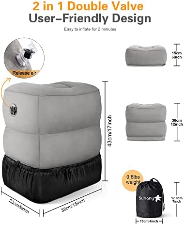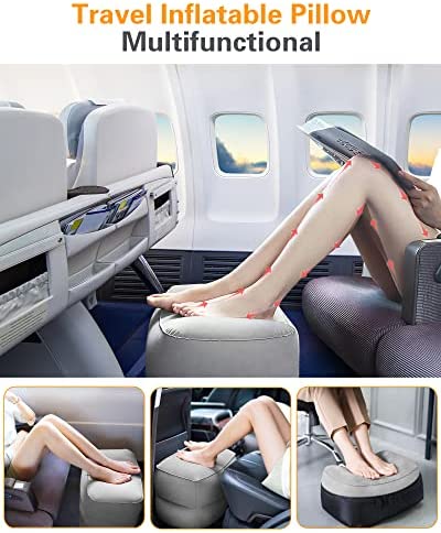 Sunany Inflatable Foot Rest Pillow for Travel, Kids/Adults Airplane Travel Pillow-Adjustable Height Cushions,for Kids to Sleep While Traveling,Suitable for Office, Home and Any Travel (1 Pack)