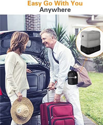 Gives You a Soft Touch: Our airplane footrest are made of washable soft PVC flocking, which is environmentally friendly and healthy, soft and durable. Weighing just 0.8 pounds, It can be compressed to 7 inches by 4.2 inches and put into a drawstring bag to carry around, inflated to a 17.7″x15″x9″ sitting/ floating cubes whenever you need. With the travel footrest for airplane, our trips will be more comfortable and fun. However, we don’t have to worry about it taking up space.