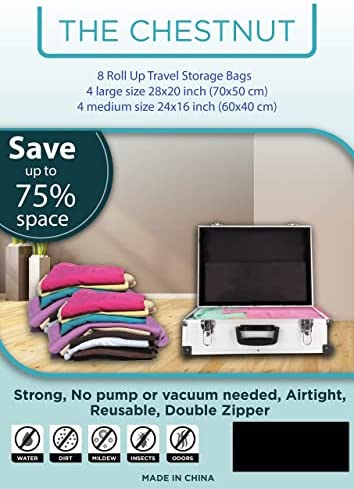 The Chestnut 8 Space Saver Bags – No Vacuum or Pump Needed – Roll-Up Compression Bags for Travel – Packing Bags – Travel Must Haves – Compression Bag – Packing for Suitcases