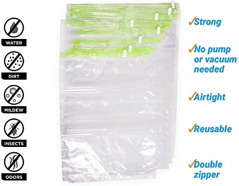 The travel compression bags are airtight, and they protect your clothes from odors, bugs, moths, dust or dampness.
