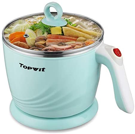 Topwit Electric Hot Pot Mini, Electric Cooker, Noodles Cooker, Electric Kettle with Multi-Function for Steam, Egg, Soup and Stew with Over-Heating & Boil Dry Protection, Dual Power, 1.2L, Green