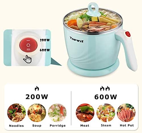 [Multi-Function & Practical] – 1.2L capacity with the dual power supply(200W & 600W), customer can be free to adjust. It can be used to steam, boil water, cooking noodles/pasta/dumplings, hot pot, egg, boil soup/porridge/oatmeal and stew. (Please notice it won’t auto shut-off)