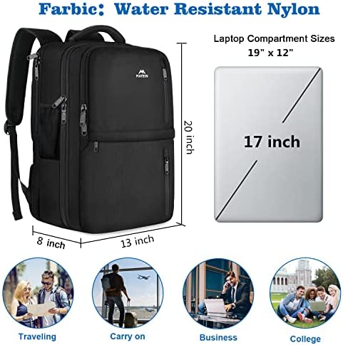 Travel Backpack, 40L Flight Approved Carry on Hand Luggage, MATEIN Water Resistant Anti-Theft Business Large Daypack Weekender Bag for 17 Inch Laptop, Black