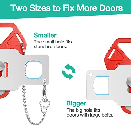 UPGRADED MULTI SIZE TO FIT MOST DOOR: Small and Big Holes to fit most doors, Portable door lock adds extra security to your room and prevents unauthorized entry, especially when traveling and staying in hotels. It’s small but will hold your door shut firmly. Keep that unauthorized entry away with WINONLY superior travel lock kit. Add an extra lock to provide an additional layer of security and peace of mind.