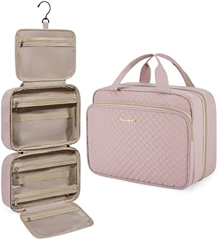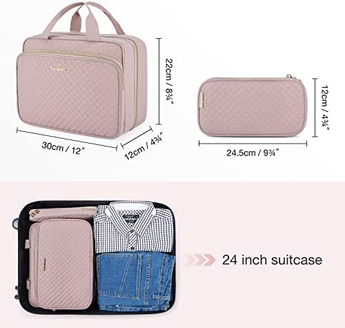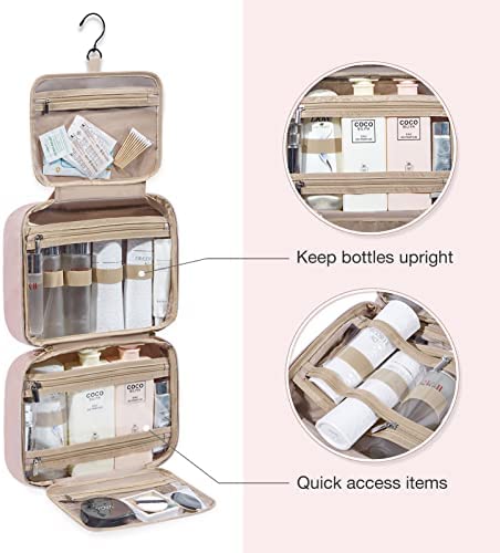 Travel Toiletry Bag, BAGSMART Toiletry Bag for Women with Makeup Bag, Water-resistant Travel Makeup Organizer with Hanging Hook for Full Sized Toiletries, Makeup Brushes, Travel Accessories, Pink
