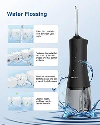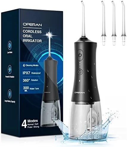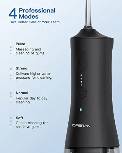 Water Flosser Operan 300ML Water Dental Flosser for Teeth Cordless Dental Oral Irrigator with 4 Modes IPX7 Waterproof Powerful Battery Life Water Teeth Cleaner Picks for Home and Travel Black