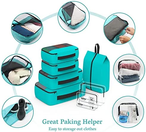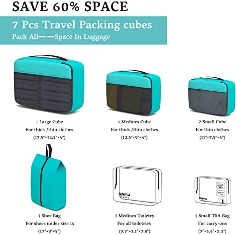YAMIU Packing Cubes 7-Pcs Travel Organizer Accessories with Shoe Bag & 2 Toiletry Bags