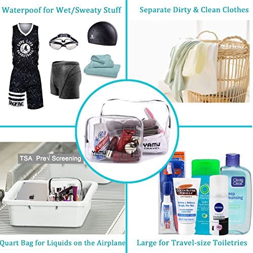 【Separating the dry from the wet/dirty】Including 2 waterproof material transparent bags, one is TSA approved bag, quart-size available for carrying on the plane with toiletries or other liquids; the other larger transparent bag, good for full-size toiletries, also for dirty/mid-wet clothes. Worry-free about wet/dirty stuff on the journey.