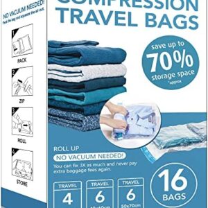 Price: [price_with_discount](as of [price_update_date] – Details) [ad_1] 16 Pack Travel Compression Bags for Clothes Luggage , Space Saver Bags for Travel, Travel Accessories, Cruise Travel Essentials(16 pack)【75% MORE SPACE!】Enlarge your limited luggage space with these travel compression bags. Compress your clothes and luggage to a more compact size, reducing the original volume Perfect for travelling!【VARIETY…